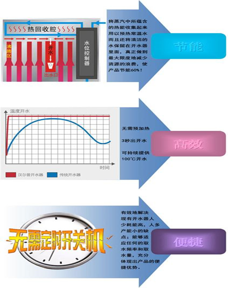 (1)無儲水箱設計,避免千滾水及陰陽水,減少了因對開水保溫而產生的能耗;