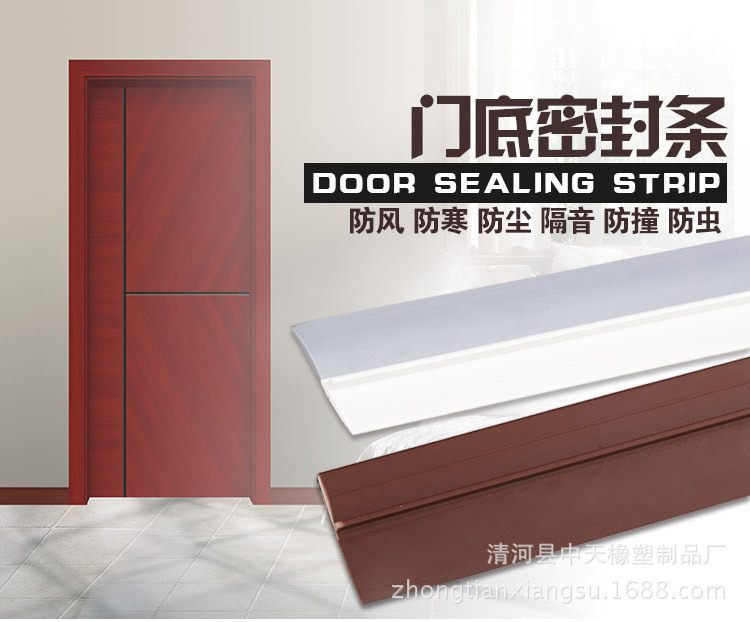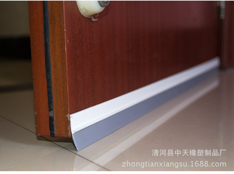 木門密封條是我廠自主研發的一款室內門門縫專用密封膠條。該產品使用真空定型復合技術,把改性聚氯乙烯軟硬質產品同時復合擠出。產品硬質部分背面貼進口雙面膠帶。軟質部分與地面相接,阻隔木門與地面的縫隙,達到隔音,防塵,防蚊蟲等作用,尤其是在冬夏兩季,阻擋室外的冷熱空氣,保證室內溫度起到關鍵作用。該產品使用方便,只需按門的尺寸裁好長度。把門擦干凈,揭開產品的雙面膠帶,粘貼好。