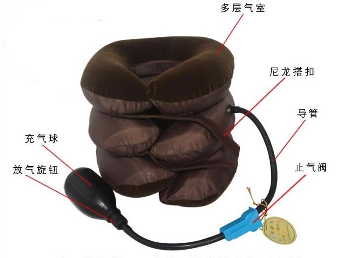 使用方法:放置于頸部,根據需要充氣至舒坦狀態,以改善頸部的血液循環,改善人體不正常生理弧度的作用,緩解頸部疼痛,有利于睡眠.