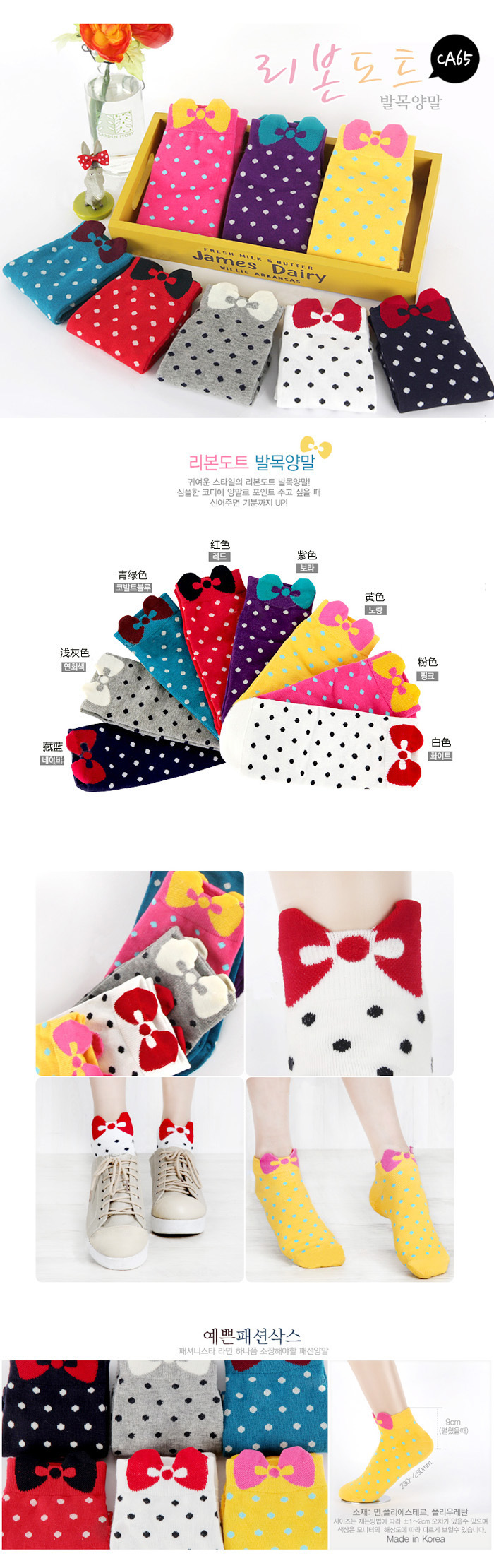 韓國糖果色可愛卡通蝴蝶結波點圓點女襪子棉襪短襪批發