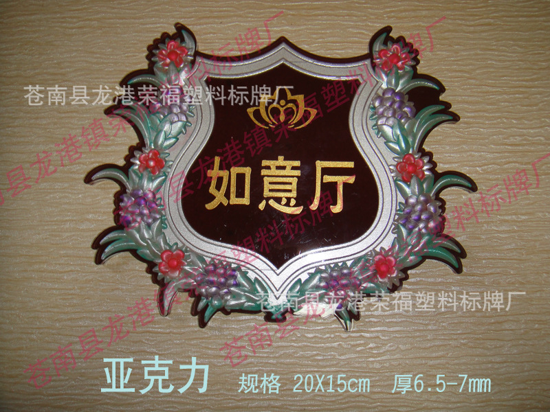 蒼南縣龍港榮福塑料標牌廠是一家專業從事雙色板、亞克力雕刻生產的商家,專業供應各類學校?;?、員工胸牌、胸章徽章,標志牌,ABS雙色板標志牌及酒店賓館門牌、指示牌類亞克力立體浮雕標志牌,等等。我們是實體廠家,所以產品品質保障和價格優惠!支持混批,歡迎來樣或圖案訂做。