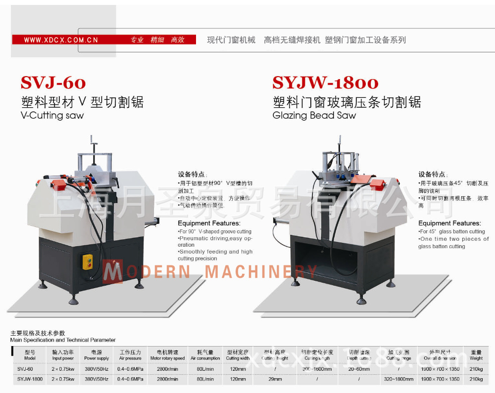 本機可完成玻璃壓條的切斷工藝,配有測量定位尺,按實際所需長度加工玻璃壓條,從而保證了玻璃壓條切割時的尺寸精度,消除了窗或框扇加工后與壓條裝配的誤差。另設有微調裝置,可按需要調整玻璃切割壓條安裝后的松緊程度。