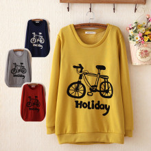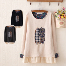 2014冬季新品女裝衛衣絨衫 日式翻領印花假兩件加厚抓絨套頭衛衣