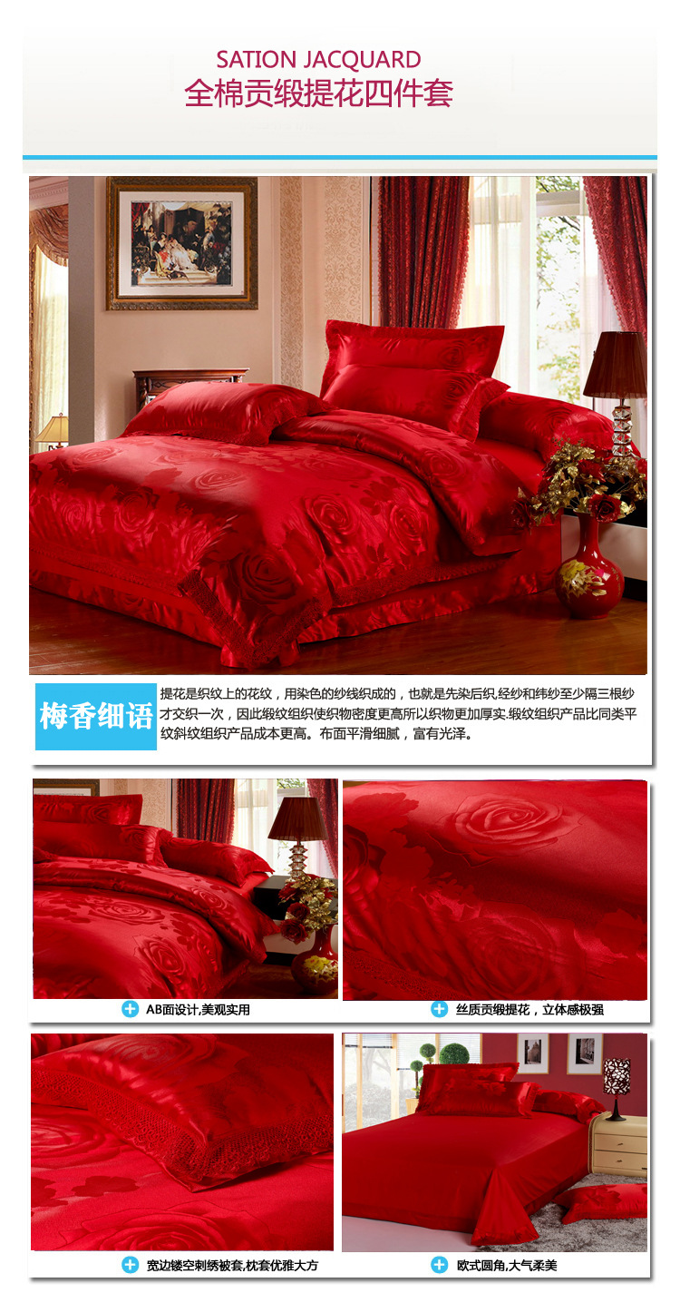 羅萊家紡四件套正品全棉貢緞提花婚慶床上用品—羅萊四六件套特