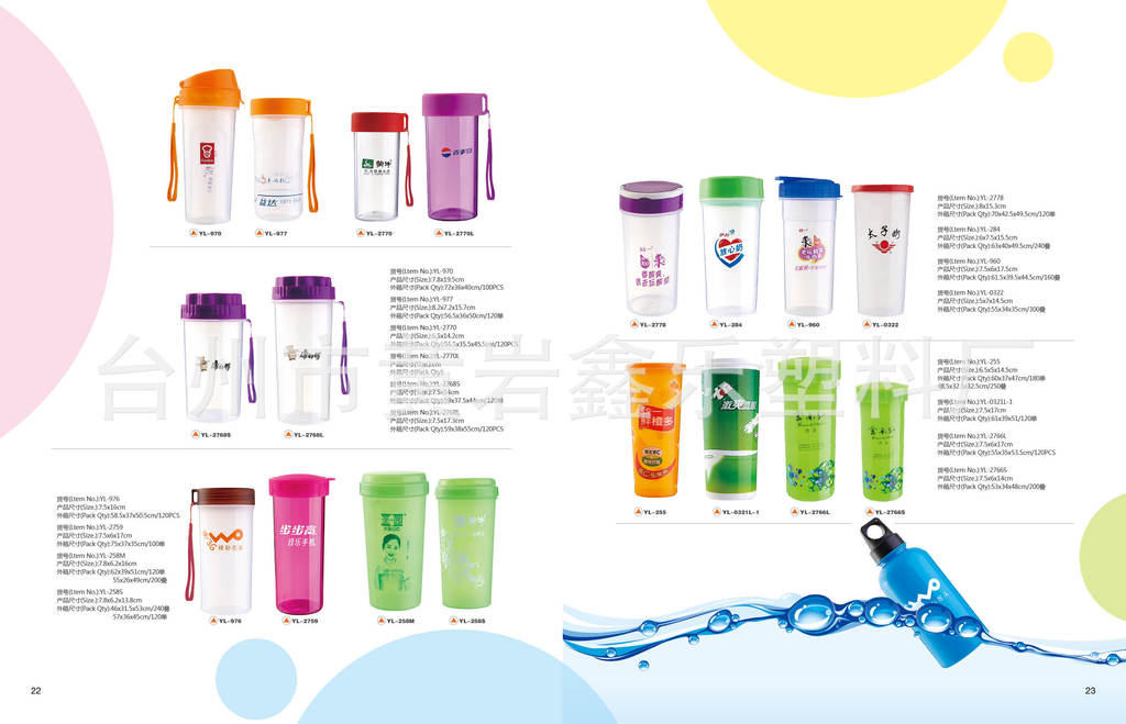 臺州市黃巖鑫樂塑料廠位于中國的日用塑料制品王國-浙江黃巖。是一家集開發、生產、銷售為一體的專業塑料制品的現代化綜合性企業。我們還為國內外知名企業,如百事可樂、可口可樂、康師傅、統一等等(飲料;食品;)等行業生產和制作促銷禮品。我司產品有樂扣杯,雙層杯,保鮮盒,飯盒,密封罐,,掛繩杯,一次性紙杯,家居用品.......價格比較實惠,定位在1-5元之間,合適做大批量禮品訂購和贈品,促銷禮品,產品以5000pcs起定。