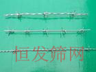刺鐵絲  常用的型號:12#x14# 14#x14#倆種   非常規型號:熱鍍:8#—36# (3.8mm—0.19mm)   電鍍:8#—38# (3.8mm—0.19mm)[1]?   除型號絲徑之分,主線絲又分為單股刺鐵絲,雙股刺鐵絲,還有三股刺鐵絲,刺絲均為四個刺頭。全自動刺繩機擰編而成,牢固美觀。處理工藝有:電鍍(冷鍍)刺鐵絲, 熱鍍鋅刺鐵絲,浸塑刺鐵絲.   刺鐵絲與立柱連接及刺鐵絲隔離柵   立柱可選圓管或u型鋼方管