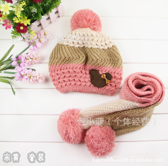 MZ794韓版帽 公主媽媽米奇貝雷帽 秋冬帽圍脖針織帽圍巾套裝 批發