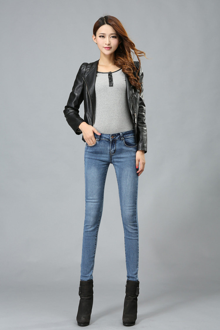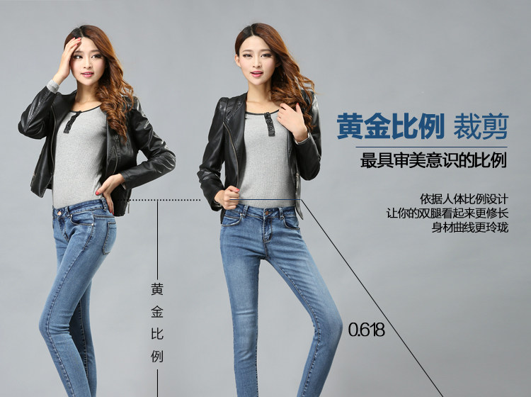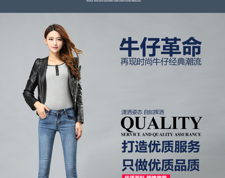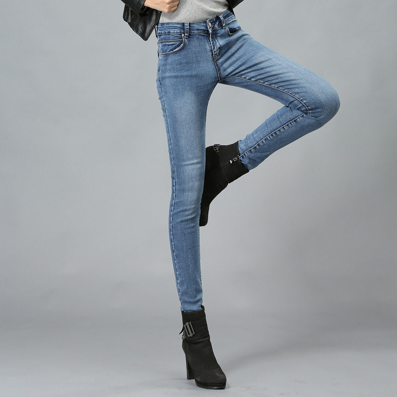 歐美風秋裝新款顯瘦女式牛仔褲時尚經典小腳褲彈力修身大碼褲批發