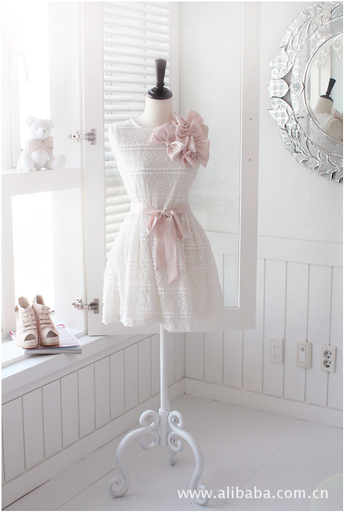 2011時尚韓版公主裙 蕾絲蝴蝶結雪紡連衣裙 (帶腰帶)
