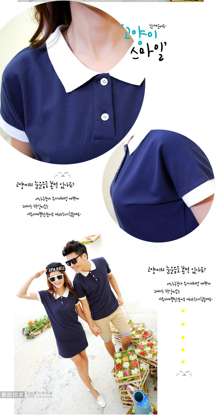 9069# 2015新款情侶裝服夏裝韓版短袖長款商務翻領男T恤女裝裙子