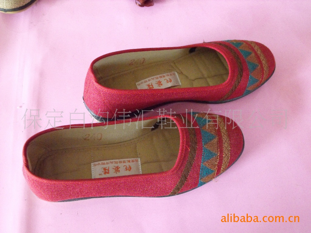保定白溝偉匯鞋業有限公司是老北京布鞋、布鞋、兒童布鞋、男女式布鞋、棉鞋、棉拖鞋等產品專業生產加工的有限責任公司(自然人投資或控股),公司總部設在河北保定白溝五一路北側工業園區三期,保定白溝偉匯鞋業有限公司擁有完整、科學的質量管理體系。保定白溝偉匯鞋業有限公司的誠信、實力和產品質量獲得業界的認可。歡迎各界朋友蒞臨保定白溝偉匯鞋業有限公司參觀、指導和業務洽談。