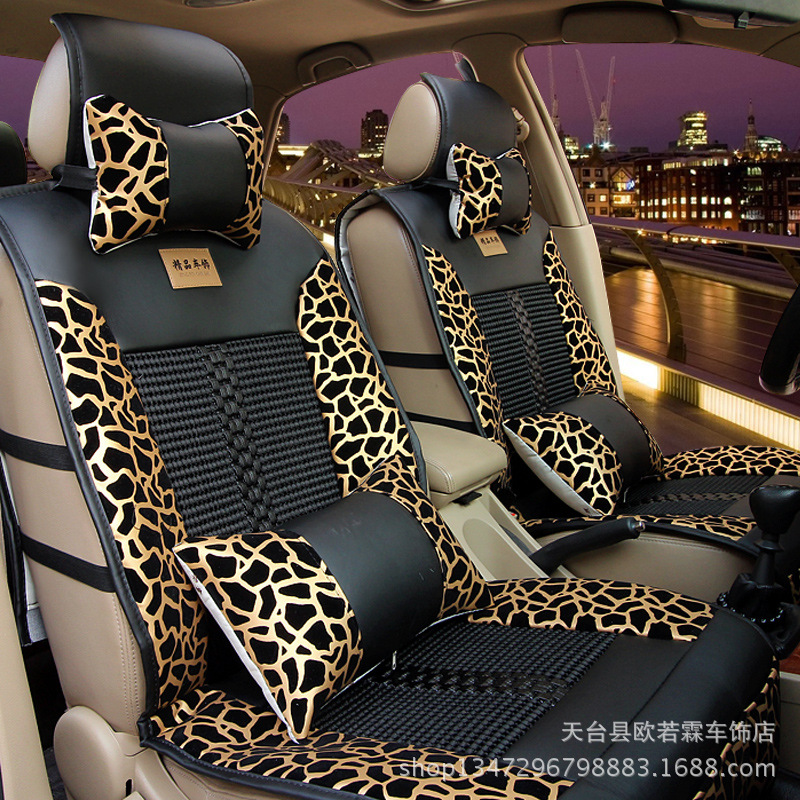 新款重磅推薦豹紋冰絲汽車坐墊車墊高端汽車內飾用品批發四季座套