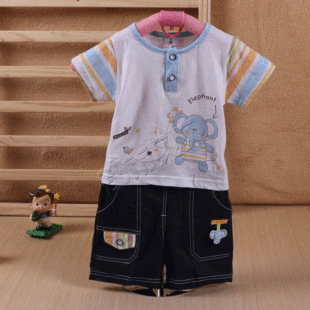 廠家直銷特批頑皮卡通V領短袖兒童套裝BJ500712.8