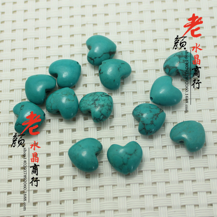 老顏水晶 綠松石心形扁片珠半成品 按條賣 DIY飾品散珠配件
