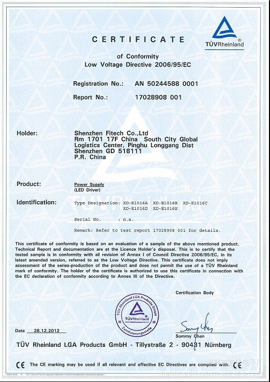 TUV CE、SAA、CB、FCC認證證書