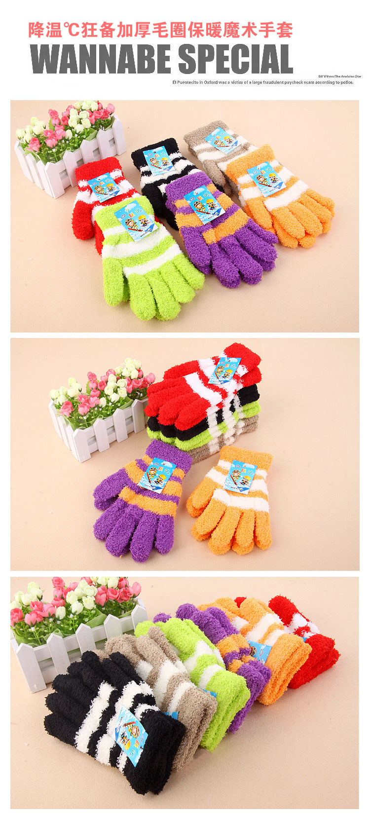 D025 毛巾手套/降溫狂備加厚毛圈保暖 珊瑚絨手套 粉色藍色紫色
