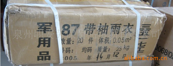 產品介紹:87帶袖雨衣,此款雨衣為連體式正宗軍品,3517工廠生產,制式裝備,顏色為灰黑色,優質PU面料,手感柔軟,透氣性好,密實防風,雙層防雨,絕不滲漏,透氣防滲漏,質量非常好.貨源充足,歡迎采購