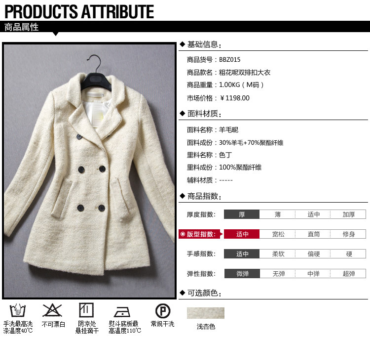 歐洲站女裝批發代理2014秋冬新款BBZ015粗花呢雙排扣大衣微信代發
