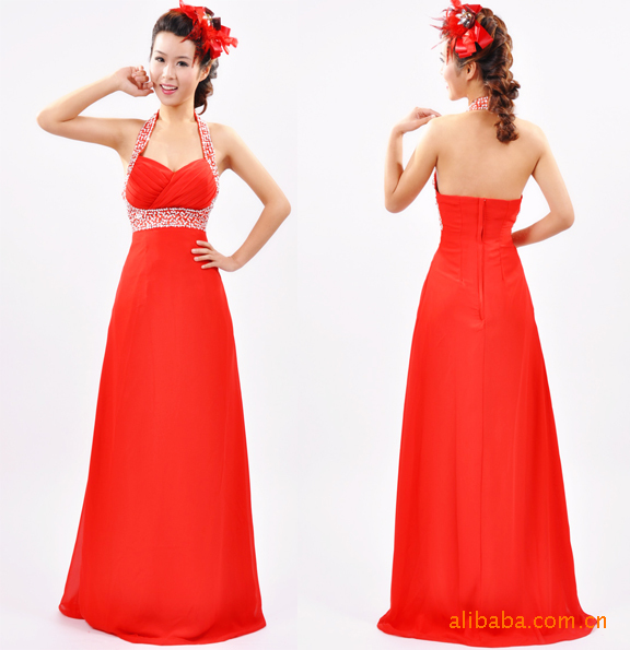 廠家直銷 新款上架-掛脖式高貴典雅新娘婚紗禮服 晚禮服