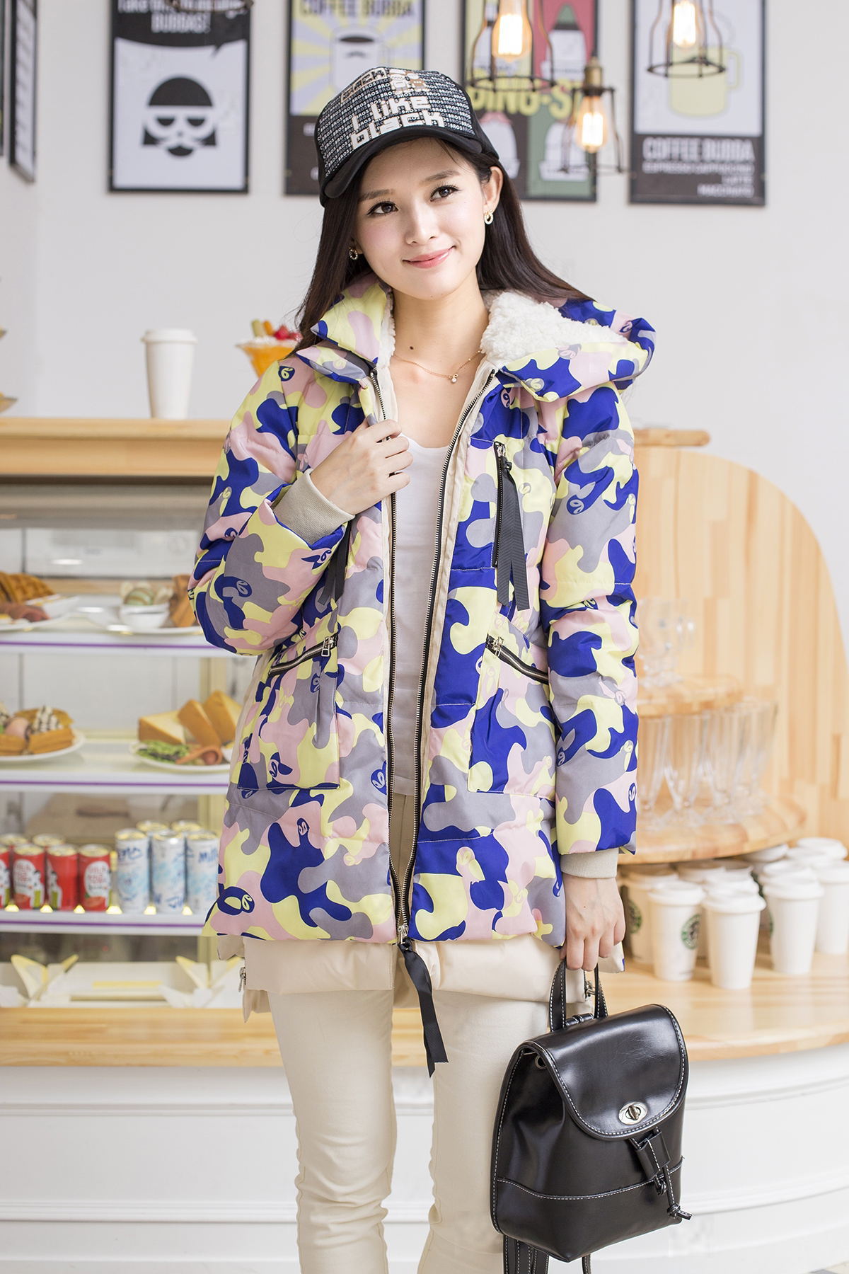 2014迷彩韓版女中長款大碼加厚軍工裝女式羽絨服胖mm女款一件代發
