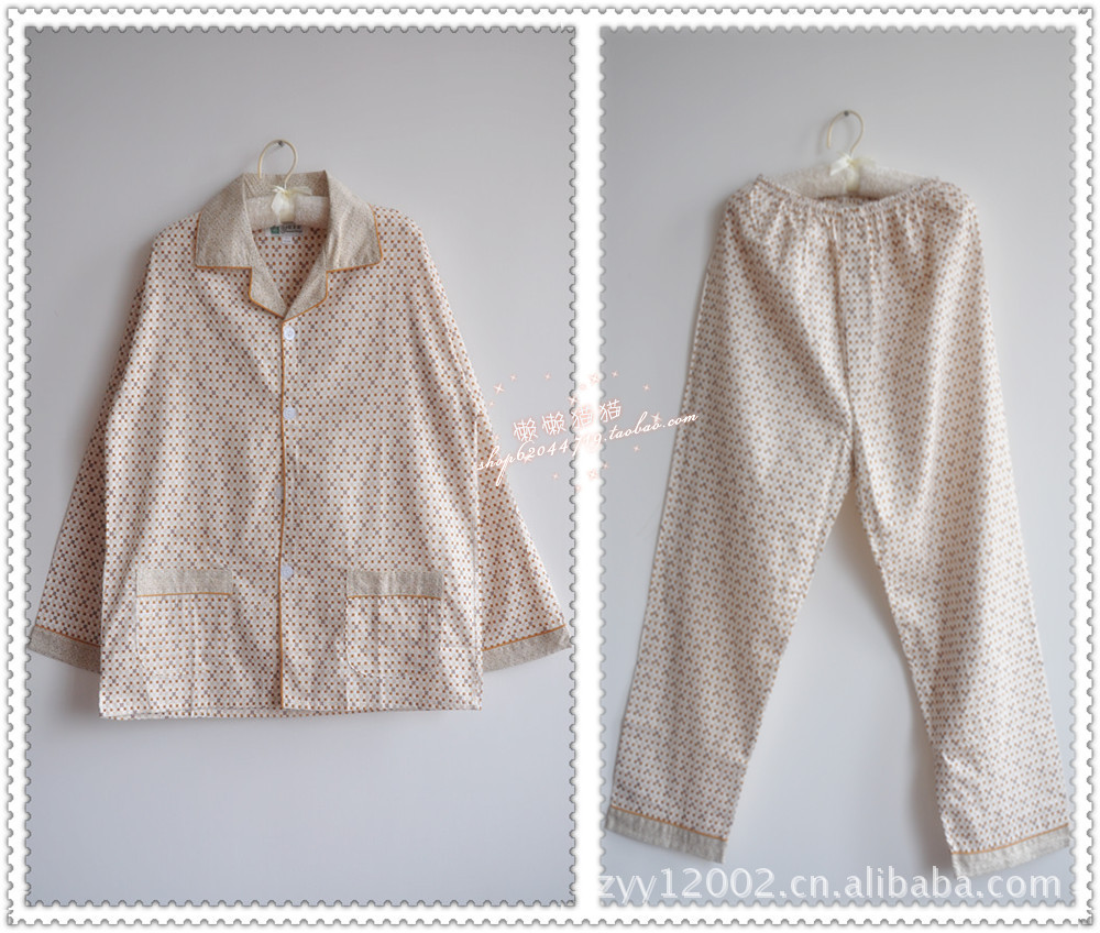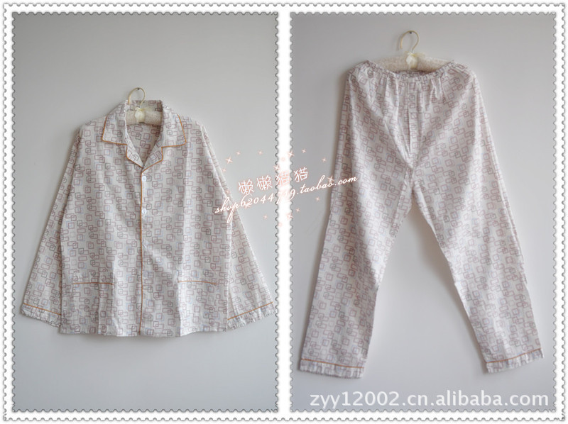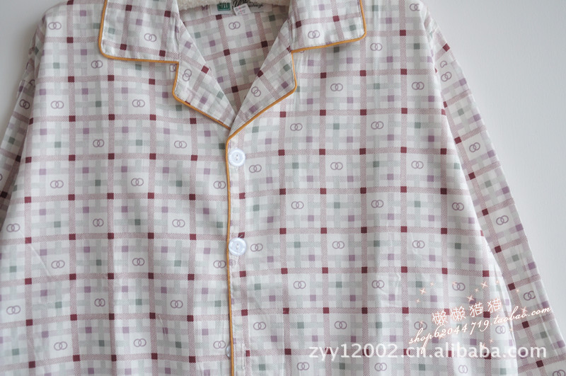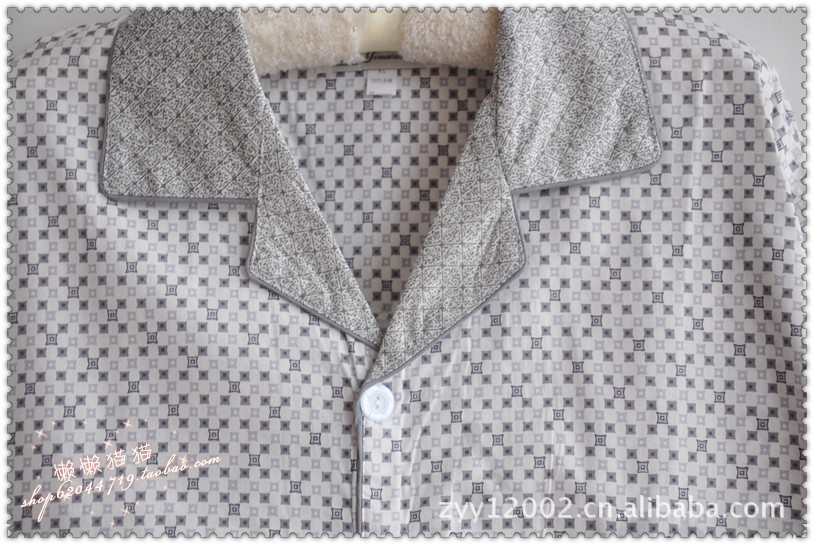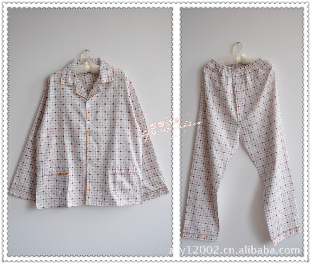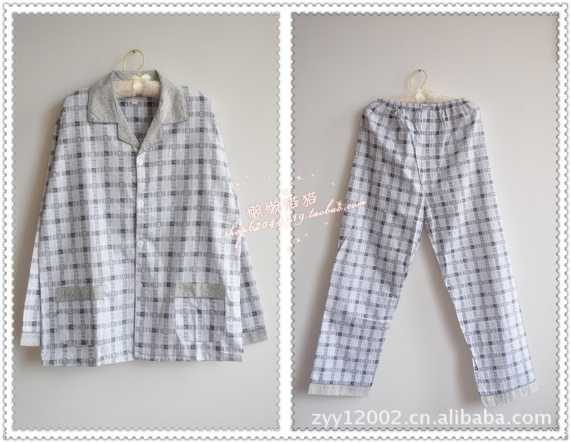 批發 春秋新款男士梭織棉灰色方格子款長袖睡衣套裝居家服 多色