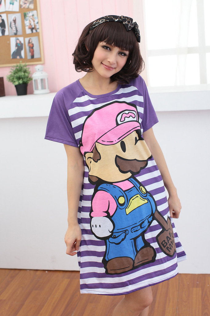 特價 2件包郵 夏韓版可愛卡通凱蒂貓海寶海賊王米奇短袖純棉睡裙