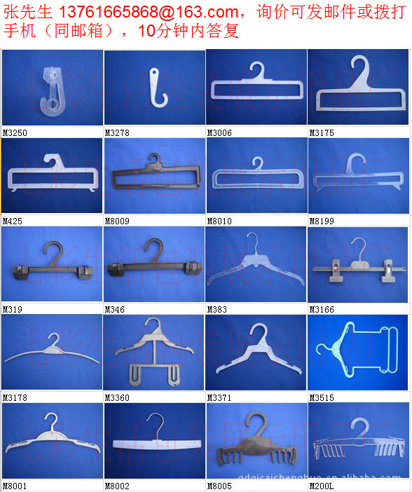 本公司是北方地區的掛鉤掛條生產基地,現有注塑掛條十幾款,展示掛鉤上百款,包裝用掛鉤也衣架近千款。