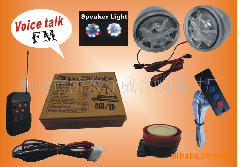 YW-666A 整套、線控、透光音箱 摩托車報警防盜系統MP3音響