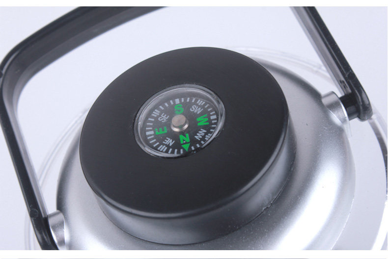 頭部:指南針設計1.ABS材料表面銀色。2.使用普通3節5號電池,耗電極省,使用旋轉型開關;燈光亮度可根據自己的需求調節開關燈亮;可連續照明40小時左右(間斷使用時間更長),照射范圍在10平方米左右的房間可清晰照亮整個房間。3.LED燈泡壽命極長,可使用10萬小時,不必考慮更換燈泡的問題。4.可防雨水,輕松應對野外惡劣環境。(注:不能潛水時使用)5.適合露營,釣魚,燒烤,停電使用,臺燈頂部有掛鉤可掛在帳篷頂部當帳蓬燈使用,頭部指南針設計。尺寸規格:高:160mm 頭部直徑:90mm底部直徑:75mm功能簡介:1.使用普通3節5號電池,耗電極省,使用旋轉型開關;燈光亮度可根據自己的需求調節開關燈亮;可連續照明40小時左右(間斷使用時間更長),照射范圍在10平方米左右的房間可清晰照亮整個房間。2.LED燈泡壽命極長,可使用10萬小時,不必考慮更換燈泡的問題。3.可防雨水,輕松應對野外惡劣環境。(注:不能潛水時使用)4.適合露營,釣魚,燒烤,停電使用,臺燈頂部有掛鉤可掛在帳篷頂部當帳蓬燈使用。頭部指南針設計,戶外使用跟貼心5.15顆高亮草帽型白光發光二極管(LED),真正的環保綠色光源,原材料無污染,生產無污染,低功耗,如此亮度,功耗卻不到1W(0.75W),可大大減少電池的使用量6、小巧的體積更易于外出攜帶