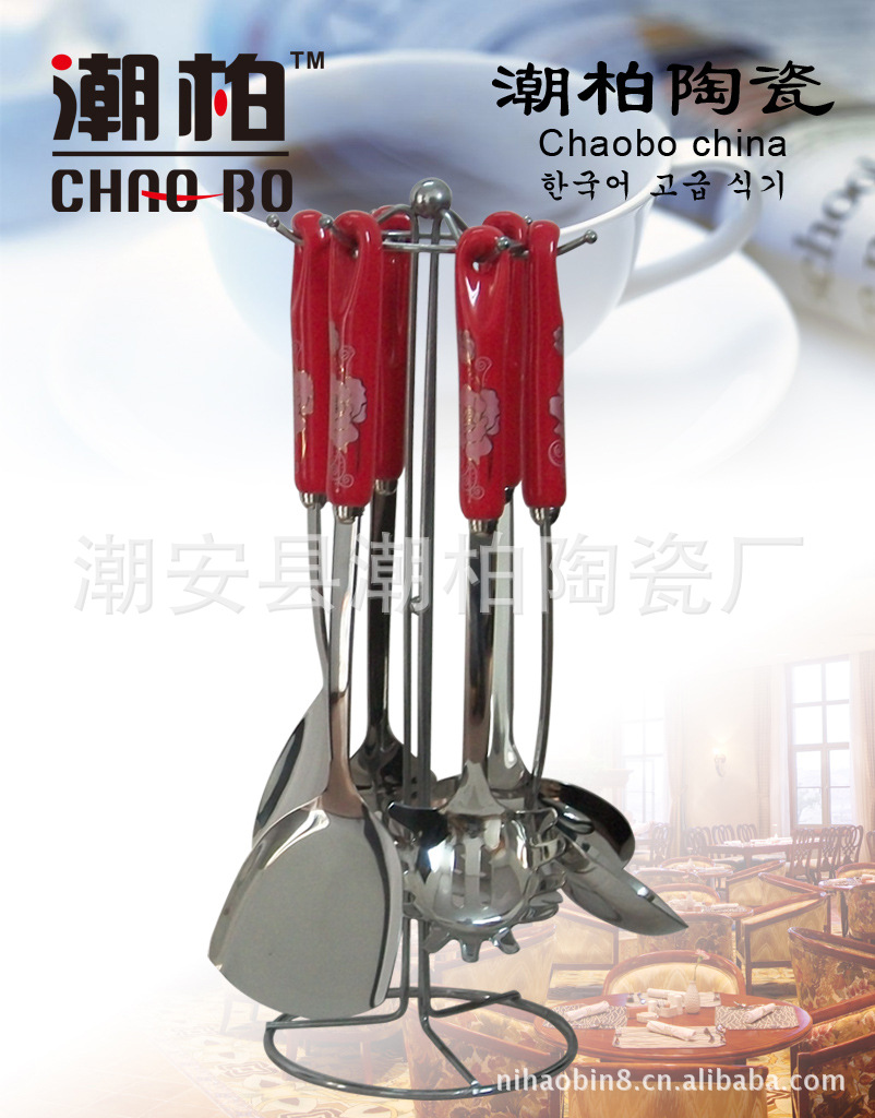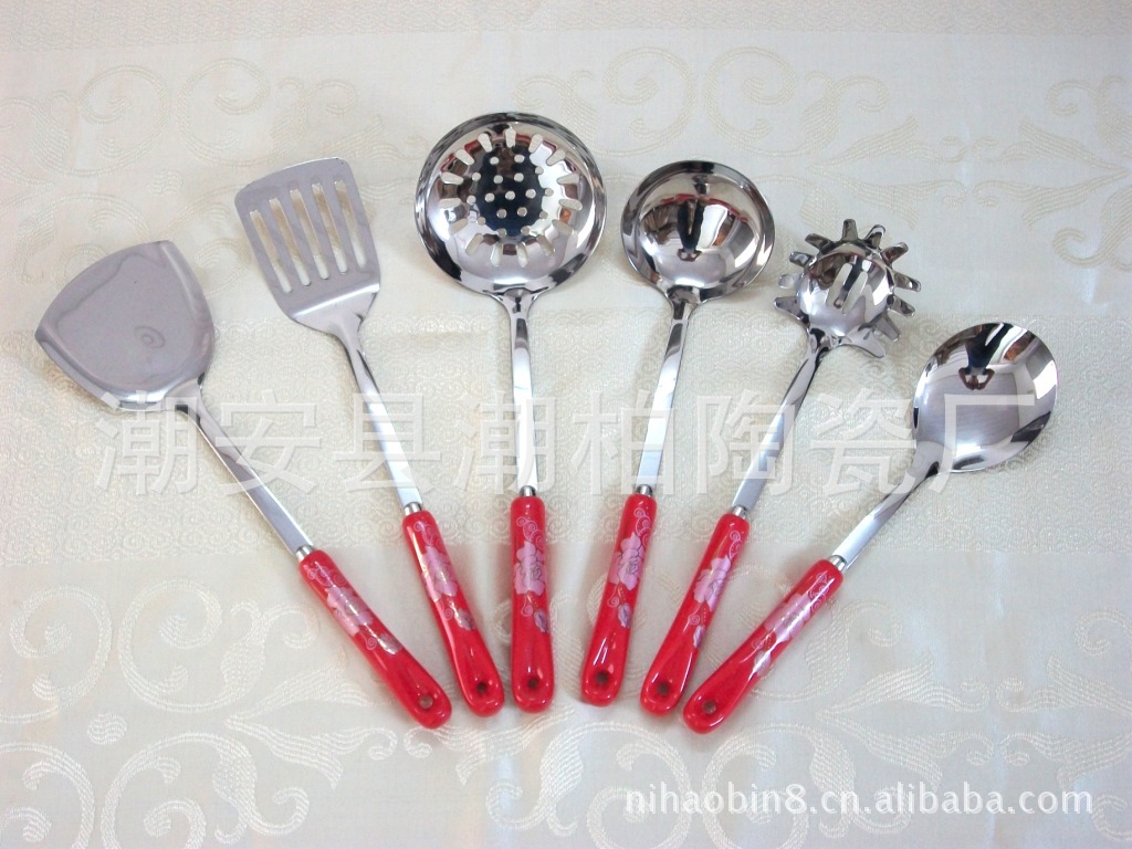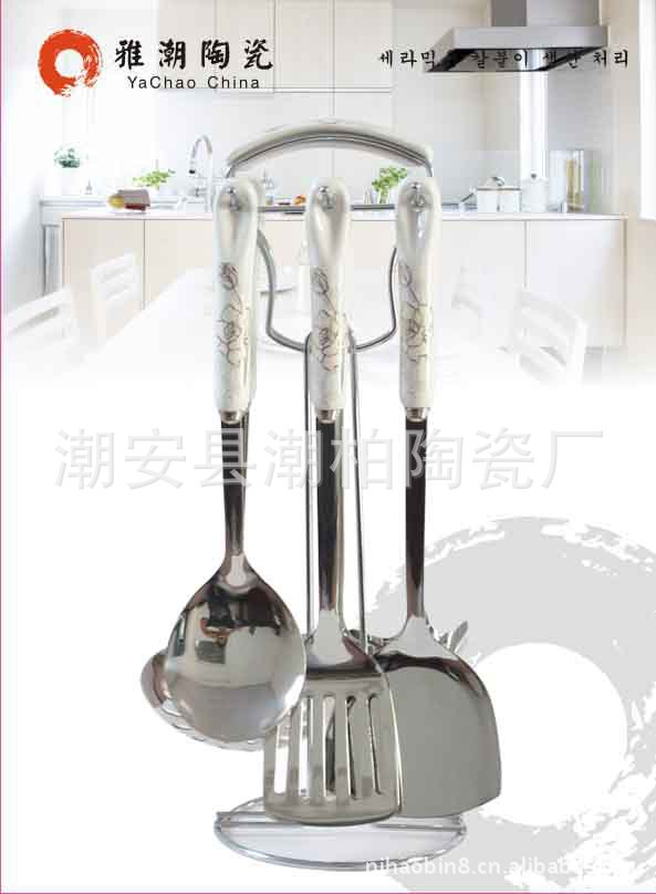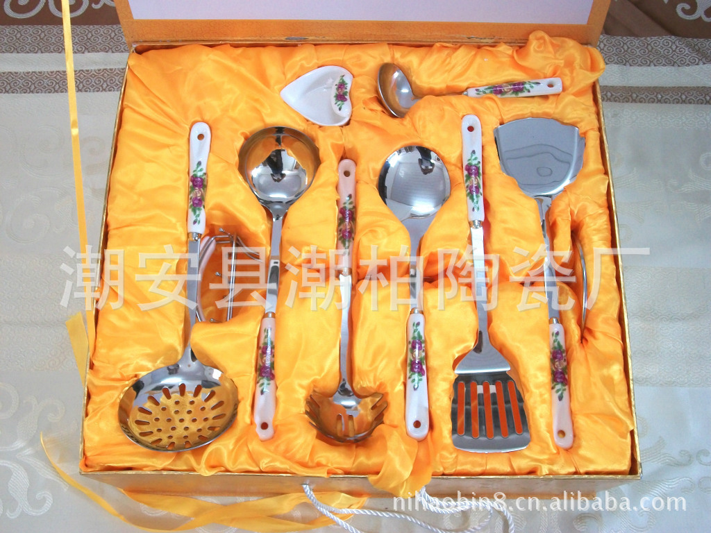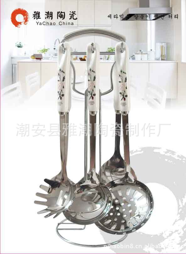 韓式陶瓷柄不銹鋼廚具套裝 廚美廚具七件套 禮品廚具