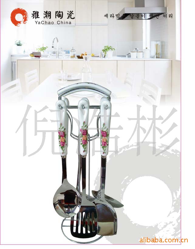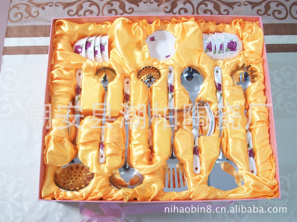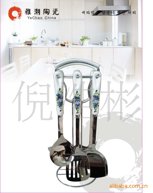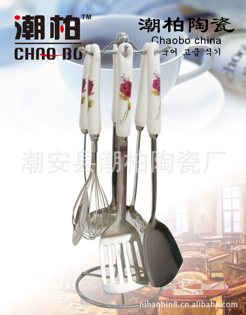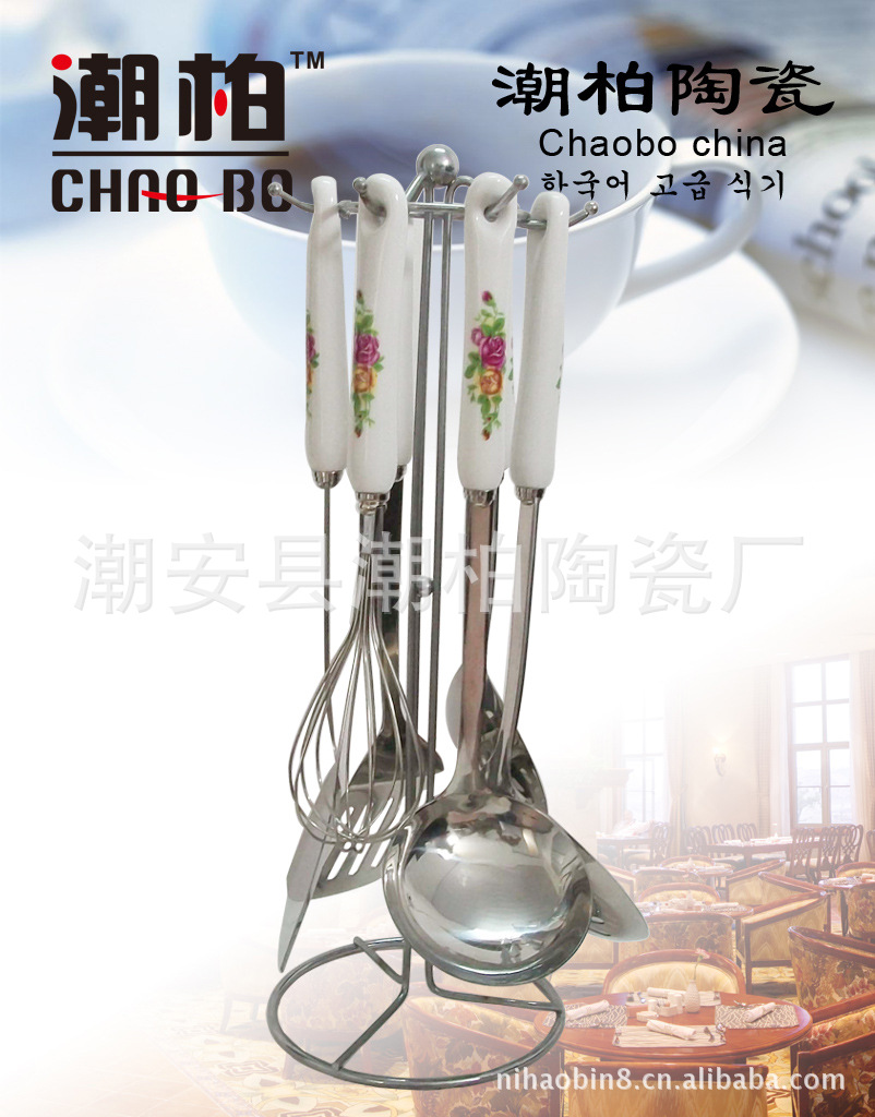韓式陶瓷柄不銹鋼廚具套裝 廚美廚具七件套 禮品廚具