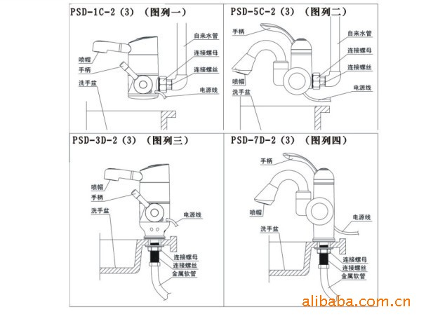 卸下原來自來水管(或洗臉盆自來水軟管)上的水龍頭,并把本產品的連接硬件安裝在自來水管上,再將主機安裝在連接件上,將主機安裝在洗臉盆上并與自來水金屬管軟管連接,通過固定螺母將其安裝牢靠。