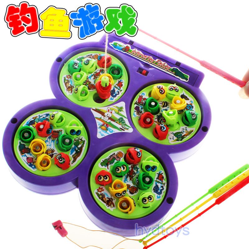 四盤音樂電動釣魚 四合一磁性電動釣魚玩具 轉動會唱歌 淘寶熱銷
