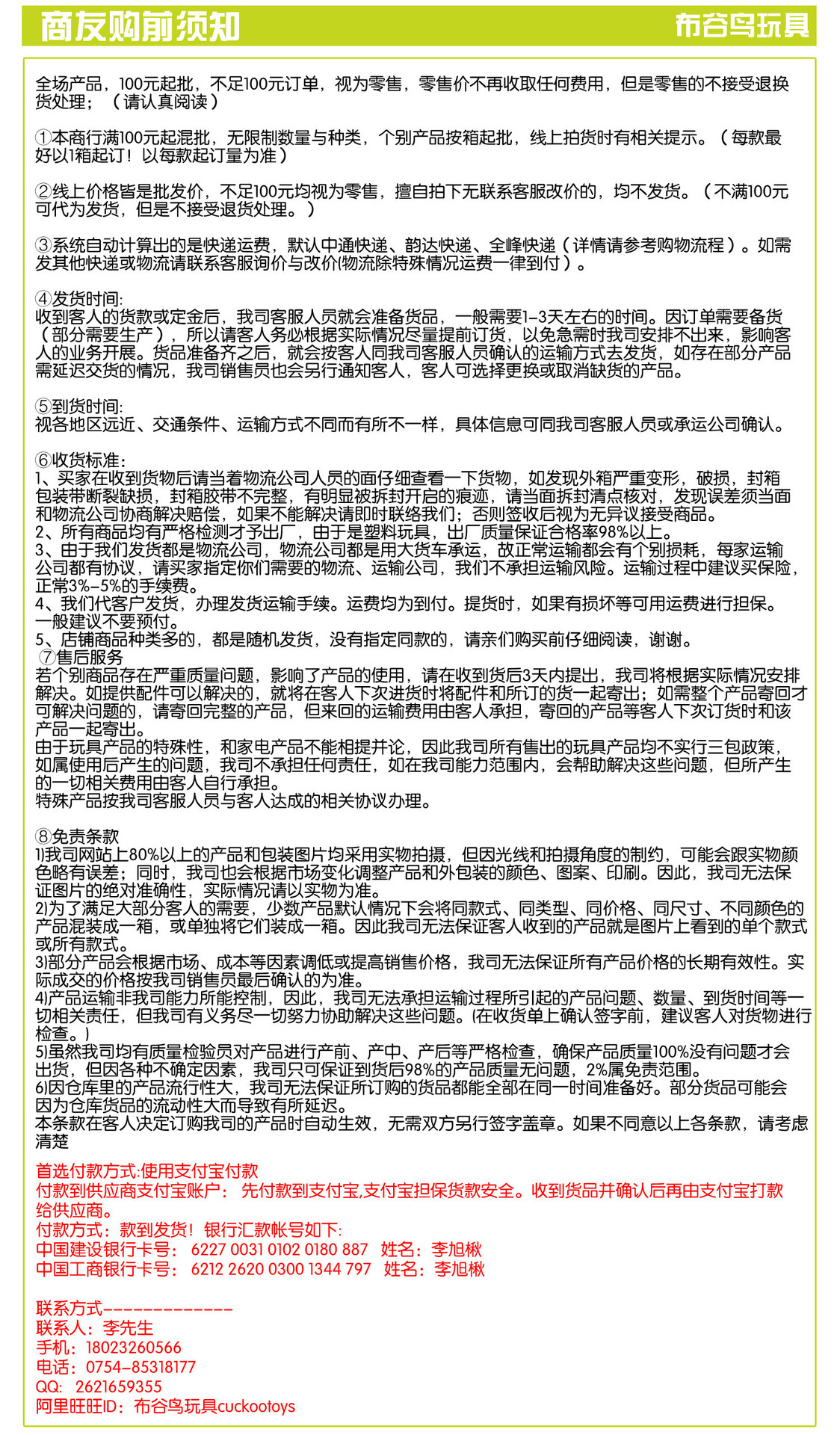 中國建設銀行卡號: 6227 0031 0102 0180 887 姓名:李旭楸