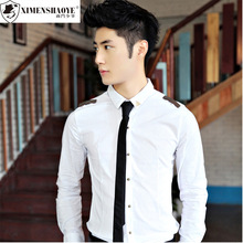 夏季新品修身男長袖襯衫韓版個性夜店修身英倫潮流男裝襯衣