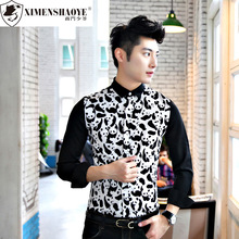 2013男士秋裝新款韓版修身個性時尚長袖襯衫 潮男繡花時尚襯衣