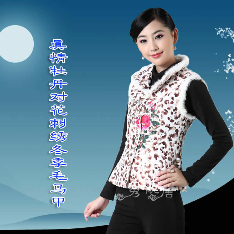 秀觀唐真情牡丹對花刺繡冬季唐裝馬甲/2011女士冬裝馬甲G55115
