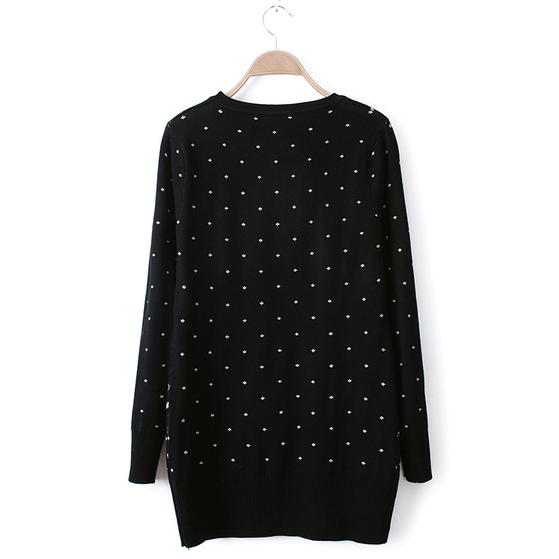 此款衣衣采用毛線面料、質感很好、很親膚、春裝慢慢開始上市了哦!小大嘴猴波點印花設計、真是融合了甜美、名媛、淑女風格的一款毛衣哦、無論單穿還是外面加件衣外套打底穿著都是不錯的呢、推薦~~~~