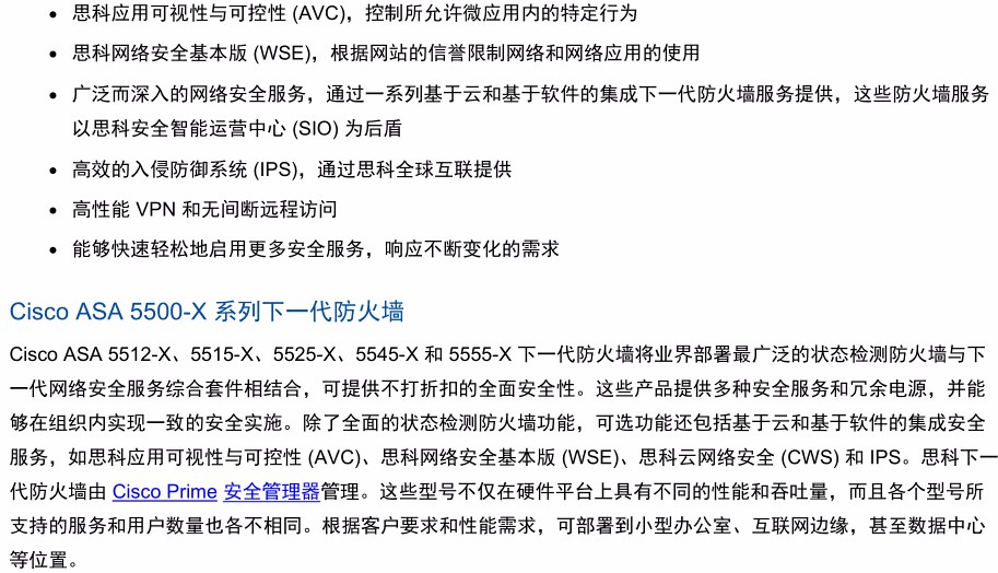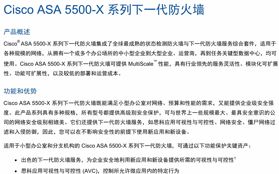 Cisco ASA 5525-X 防火墻版;包括防火墻服務、750 個 IPSec VPN 對等點、2 個 SSL VPN 對等點、8 個銅纜GE 數據端口、1 個銅纜 GE 管理端口、1 個交流電源、主用/主用模式高可用性、2 個安全情景和 3DES/AES 許可證 并發連接數500,000 狀態檢測吞吐量:2Gbps,多協議狀態檢測吞吐量:1Gbps,IPS吞吐量:600Mbps 8個GE接口