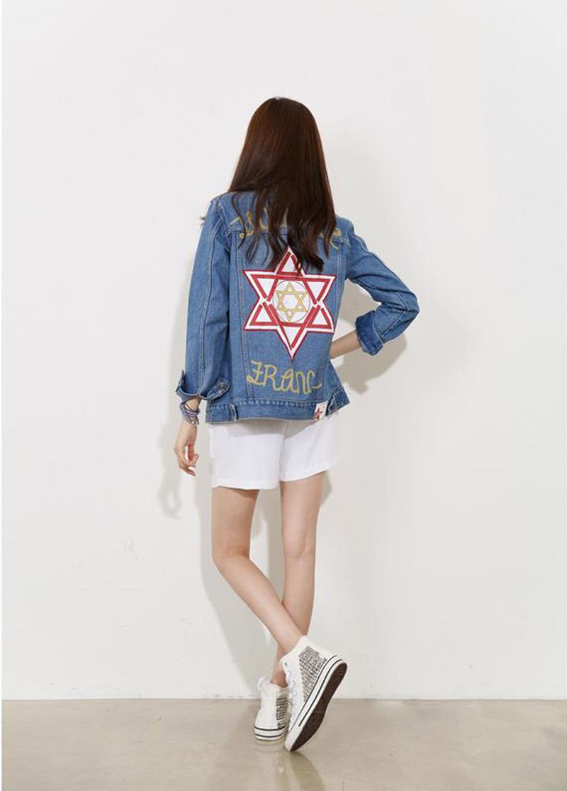 6829 韓版東大門 春季長袖個性后背原宿風印花牛仔外套夾克女