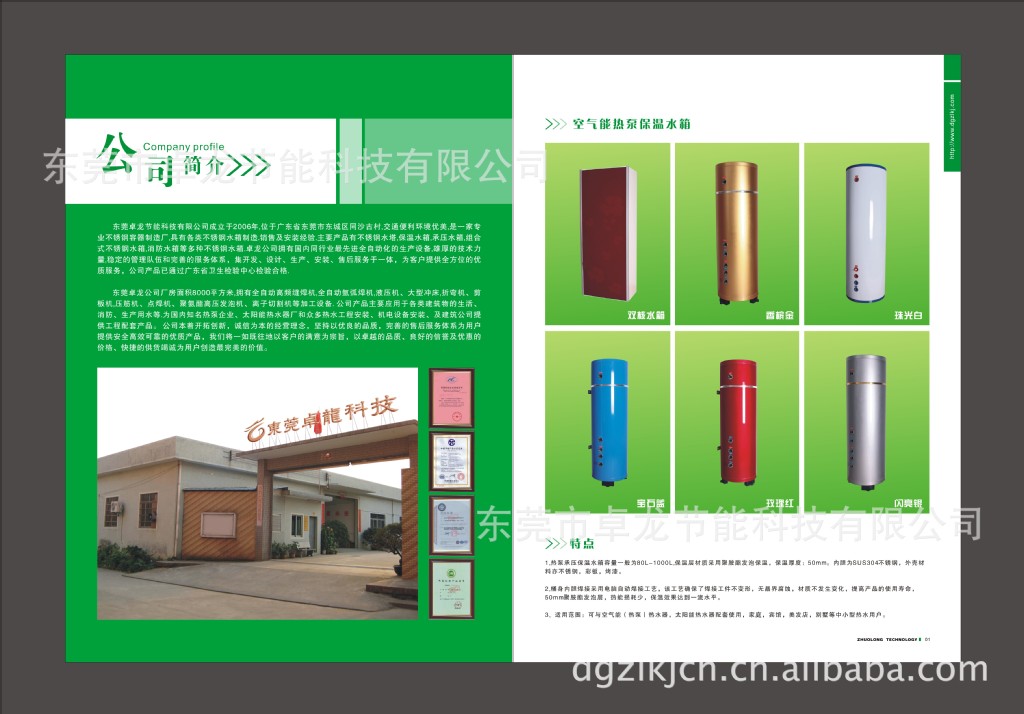 東莞市卓龍節能有限公司專業生產100L-1000L承壓式保溫水箱,分壁掛式和立式兩種。適用于太陽能熱水系統、熱泵熱水系統、鍋爐熱水系統、熱水爐和各種需要液體保溫的場所。為國內外熱水器、熱泵熱水器廠家生產配套,讓有志于熱水器行業的廠家在市場上無后顧之憂。