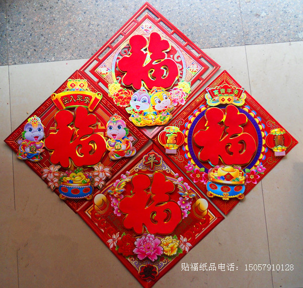 新款福字批發單包裝馬年立體福字對聯銅版紙福