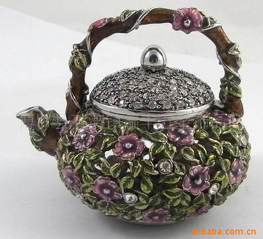 1)珠寶盒用鋅合金和鉛錫合金電鍍與搪瓷油完全手工鑲嵌制作而成的。