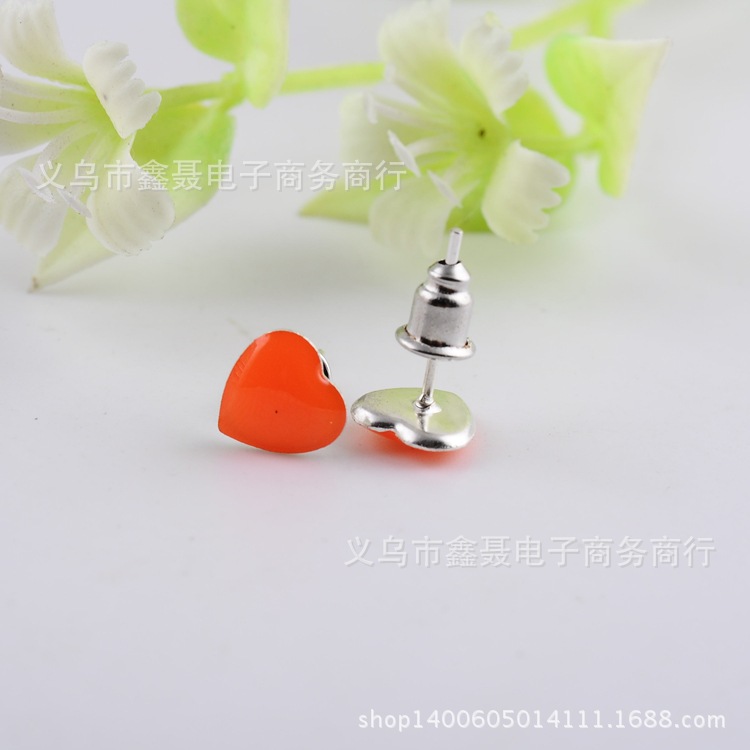 8mm桃心熒光耳釘 混彩耳釘