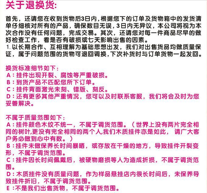 因為物流導致貨物破損,需要退換貨的買家要自己承擔運費!簽收前請當面點清再收貨!