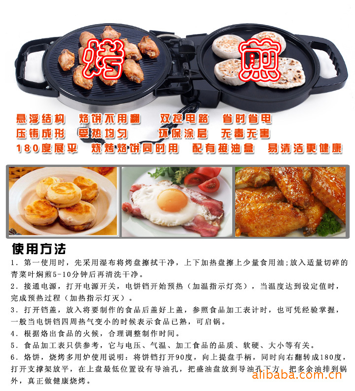 6.適用于加工各種燒烤、烙、煎的食品,如大餅、餡餅、發面餅、鍋貼、玉米餅、烤肉、煎魚、油燜大蝦等