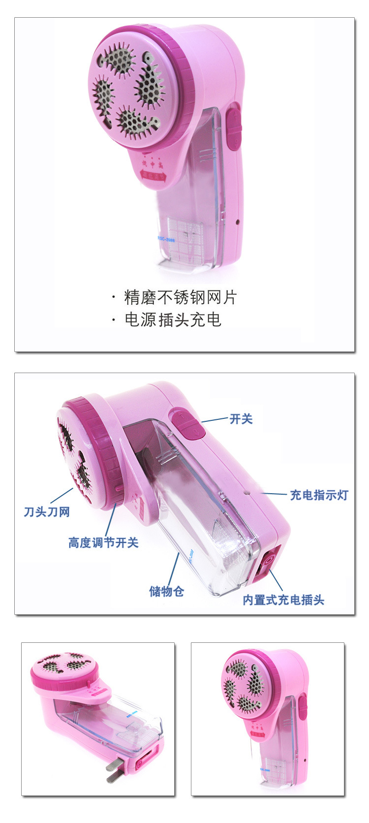 ●請用毛刷清理剃毛絨器網片和內部刀片,否則將影響運轉速度,刀片磨損較厲害時可更換刀片