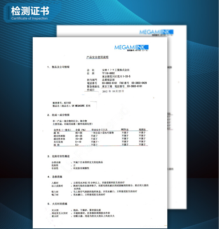 13、油墨長時間粘附在皮膚或衣服上可能會產生過敏現象,故使用時請注意保護,使用后請及時清洗。
