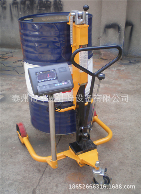 鷹嘴式電子稱手動倒料車 稱重式油桶升高車 手動液壓升降倒料機