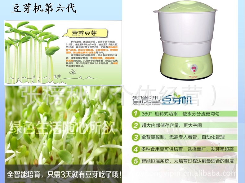 外觀時尚,操作簡單,安全耐用,電腦自動控制調節發芽濕度,無需人工看管,3—4天即可食用。是家用、送禮的選者